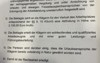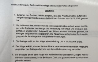 Ein Auszug einiger unserer Erfolge im Arbeitsrecht